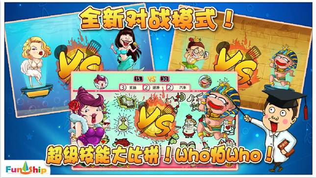 3. 丰富角色与物件:游戏中拥有众多q版滑稽造型的角色,如性感的仓老湿、玛丽莲梦露等,以及数千个具有特色的物件,如外太空的卖萌星人、童话的青蛙王子等,让游戏更加有趣和具有挑战性。