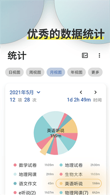 2. 利用时间统计功能:定期查看时间统计图表,分析自己的时间分配情况,及时调整学习计划。
