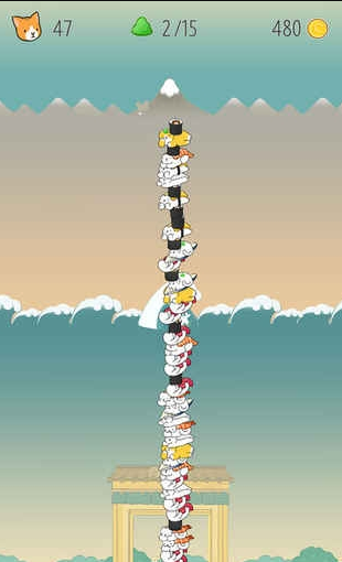 2、把握好时机,让猫咪和寿司能够保持平衡堆叠,你能堆多高的寿司猫,它们就全都归你啦。