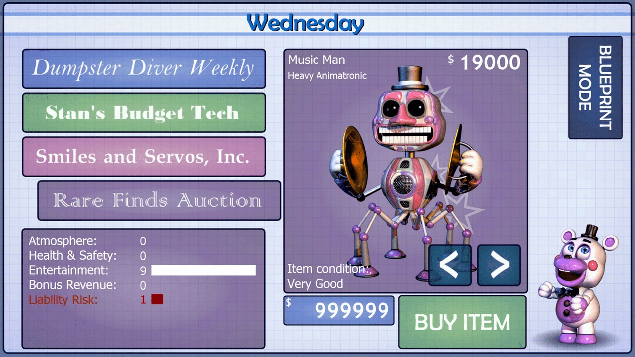 玩具熊午夜后宫6披萨模拟器(英文名:freddy fazbear's pizzeria simulator)是一款由scott cawthon开发的恐怖经营类安卓游戏,作为玩具熊的五夜后宫系列的第六部正统续作,它延续了该系列的主线剧情和核心设定。玩家将扮演freddy fazbear's pizzeria特许餐厅的经营者,通过2d模拟经营界面管理餐厅的日常运营,包括设备采购、电子动画角色维护等经营要素。同时,玩家还需应对夜间突发的恐怖事件,体验紧张刺激的生存恐怖氛围。游戏采用q版2d画面,结合益智解谜机制,为玩家带来独特的玩法循环体验。