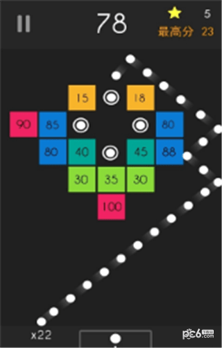 是一款非常经典物理打砖块类游戏,手游中拥有三种不同的模式可以让玩家来挑战,不同的模式玩法会有所不同,玩家在游戏中要做的就是瞄准角度,弹射球球,相当有趣!