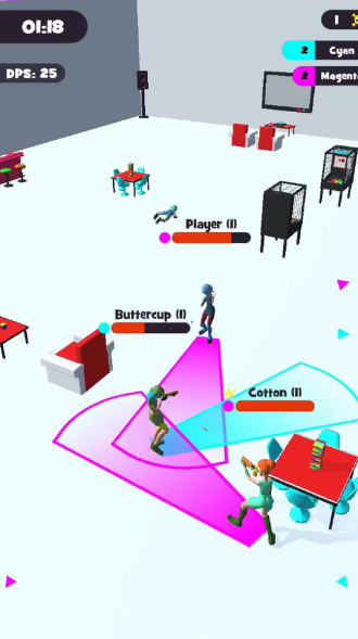 《Legends.io》是一款3D大逃杀游戏。这一款节奏非常快的吃鸡游戏,因为战场就是一间房间,你需要在这个狭窄的空间里的混战中活下来。游戏还升级了一些玩法,比如每一次杀敌你都会强大起来,角色射击的范围是有限的,如果不在角色的攻击范围里,即便射击也没有用。注意这些点之后玩家就可以开始这款大逃杀游戏了。