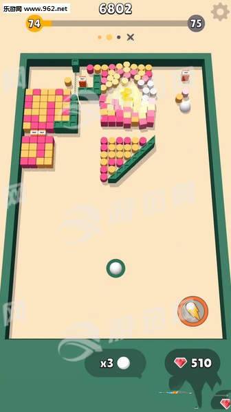 控制好小球的方向将会非常的关键,能够让你一次性粉碎更多的积木。