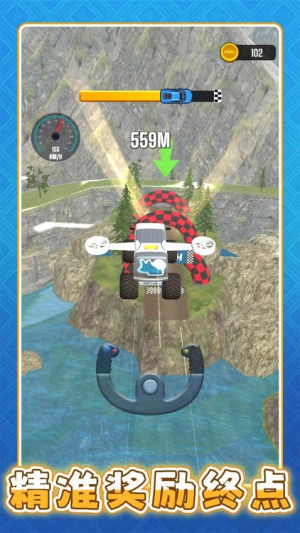 1. 拖动蓄力机制:玩家需长按屏幕拖动汽车调整蓄力角度,松开后车辆将沿抛物线轨迹飞行,需精准预判障碍物位置与地形落差。