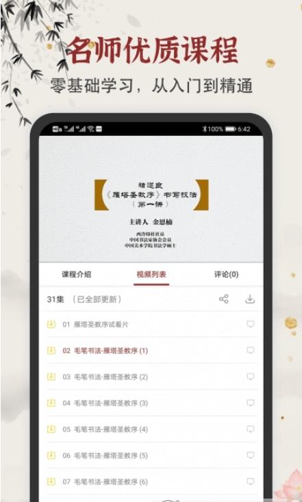 1. 课程全面:软件内包含了从基础入门到进阶教学的各类课程,适合不同水平的书法爱好者。