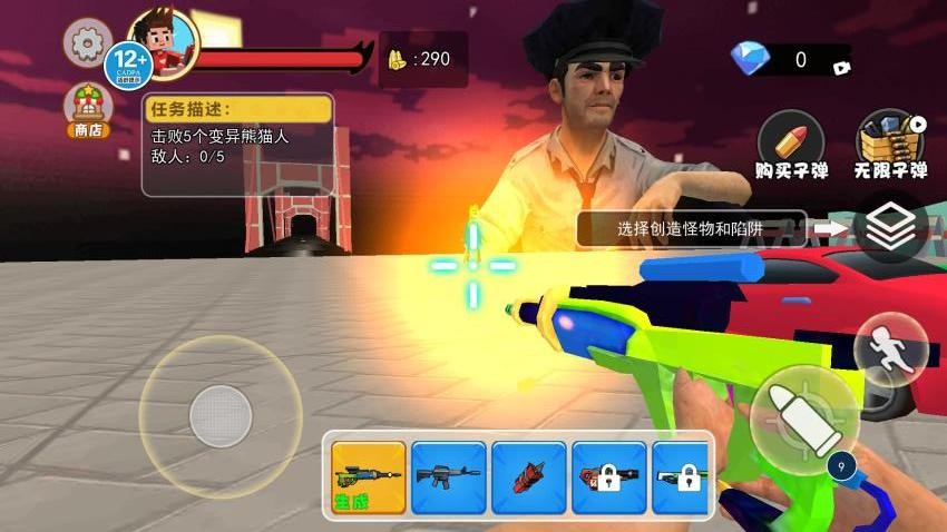 1. 武器生成系统:玩家可利用变异枪创造变异熊猫人、变异大象等生物,这些生物能配合跑车牵制敌人,形成“生物+车辆”的协同作战模式,例如让变异熊猫人吸引敌人火力,再驾驶跑车从侧翼突袭。