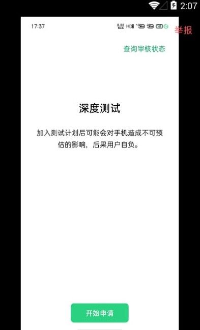 3. 开始测试:下载安装深度测试apk后,联网并登录oppo账号,点击“开始申请”按钮,按提示走完申请流程。审核通过后,点击“开始深度测试”,手机将自动重启并进入fastboot模式。