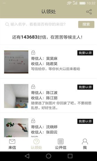 1. 信件收寄:用户可以将写好的信件拍照或扫描后寄给收信人,如果对方已注册来信app,信件将直接进入对方信箱。