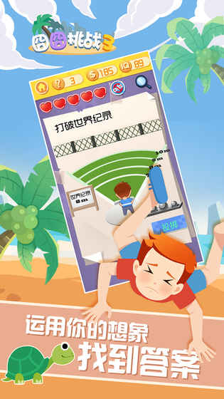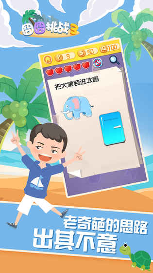 《囧囧挑战3》是一款卡通Q版画风的益智烧脑闯关手游,脑力和反映的双重挑战,运用你的想象找到答案,回答正确即可过关,游戏上手容易,老奇葩的思路,出其不意,考验你的逆向思维能力。