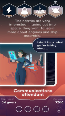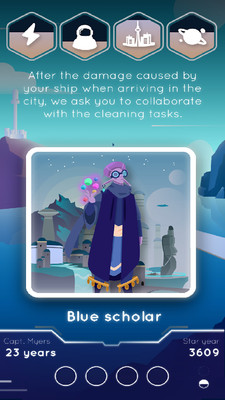 这是3018年。在所有自然资源耗尽之后,空间殖民化似乎是人类生存的唯一途径。成为星际间的一名船长,带领这个绝望的任务去发现新的星球,在那里人类文明可以繁荣发展。探索新世界,同时面对不同角色带来的困境。你将如何回应他们的需要和要求?快速向左或向右滑动,做出建立或摧毁你的殖民地的决定。然而,不要忘记所有的决定都有其后果。保持资源平衡!