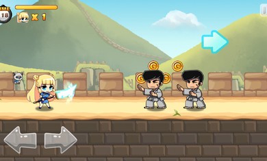 《超级美女战士 Super Warrior:The Beginning》是一款简单好玩的横版闯关类游戏。游戏画风小清新类型的。玩家将要扮演一位美少女战士手持大刀去征服你的敌人。而操作方式也非常简单,只有左右跳三个键。攻击是自动完成的。只要美少女走到敌人的面前,敌人都会灰飞烟灭~~ tips:小心那些大家伙,他们可不怕这个小刀~