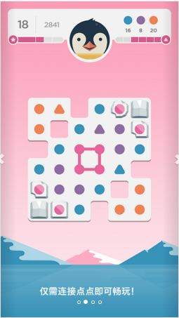 dots&co是一款休闲益智类的手机游戏,玩家需要通过连接相同颜色的波点来消除它们,收集积分并通关。游戏整体设计风格简约精致,色彩柔和,给人一种舒适的感觉。除了基本的消除玩法,游戏还加入了各种有趣的元素和机制,如不同角色的特殊技能、能量收集与释放等,使得游戏更具挑战性和趣味性。