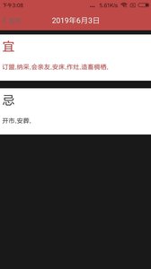2. 宜忌查询:在日历界面,用户可以查看当天的宜忌信息,了解哪些事情可以做,哪些事情不宜做。