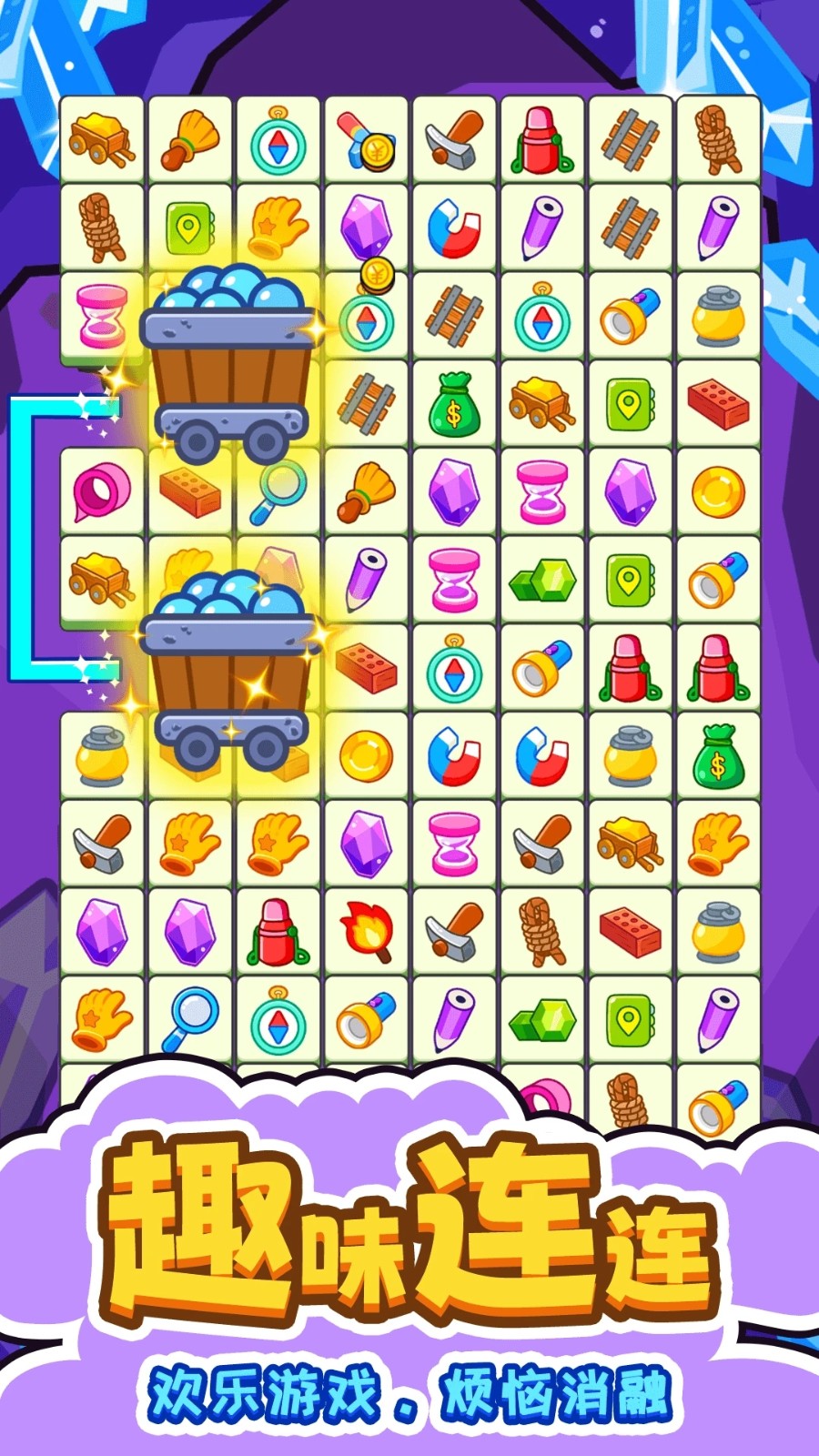 1. 核心玩法:以“三线连接消除”为基础,玩家需在杂乱排列的图标中寻找相同图案,用不超过三次直线的路径连接消除。随着关卡深入,图案种类从基础动物、植物扩展至生活物品(如扫帚、相机),干扰元素(如障碍方块)逐渐增多,挑战玩家对路径规划与空间布局的掌控能力。