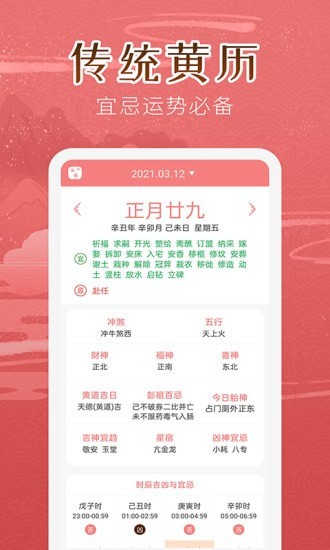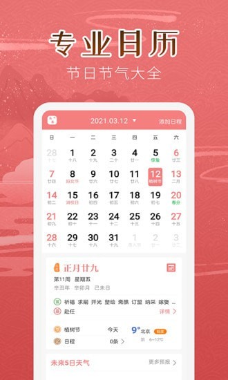 1. 全面日历信息:集公历、农历、黄历于一体,提供节假日、节气、宜忌等全面信息,方便用户查询。