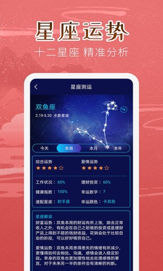 1. 个性化星座运势:每日更新,结合个人星座特点,提供详尽的运势分析,帮助用户规划一天的行程与心情。