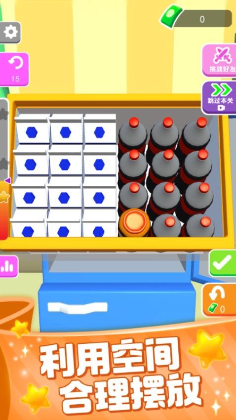 5. 分类管理:将相似食材集中摆放(如饮料区、速冻区),可提升后续关卡查找效率,避免因混乱布局导致时间浪费。
