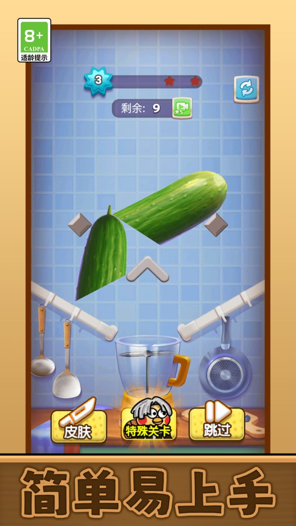 1. 基础操作训练:初期关卡以香蕉、苹果等规则形状水果为主,建议优先练习直线切割与弧线切割的衔接,掌握工具切换时机。