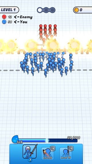 1. 核心玩法:玩家通过手指在屏幕上绘制墨迹召唤火柴人士兵,墨迹长度与形状决定部队行军路线,短直线可让剑士快速突进,蜿蜒路径则适合弓箭手远程输出。召唤单位需消耗墨汁资源,频繁召唤同类兵种会导致能耗上升,迫使玩家灵活搭配近战、远程、攻城单位协同作战。