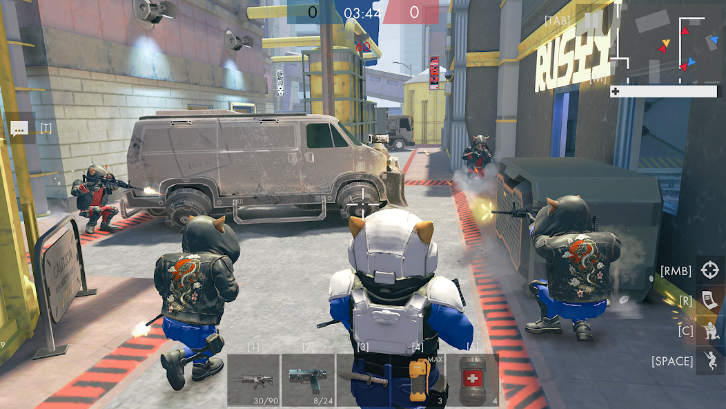 2. 武器系统与技能组合:提供超过20种武器,包括激光枪、飞镖、烟雾弹等,每把武器均有专属攻击模式与特效。玩家可搭配猫咪特工的专属技能,如“九命”的瞬移突进、“强爪”的蓄力重击,形成个性化战斗风格。