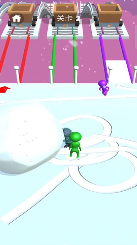 2. 物理模拟滚雪球机制:雪球滚动受重力、摩擦力影响,玩家需控制滚动方向与力度,避免雪球偏离赛道或撞碎;雪球规模越大,冰桥搭建距离越长,但移动速度会降低,需平衡效率与风险。