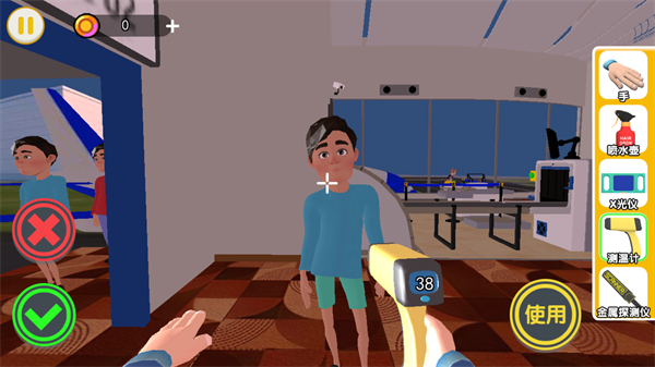 1. 基础操作:进入游戏后点击“开始检查”按钮,通过滑动屏幕控制安检员移动,点击工具栏切换检测设备,长按金属探测仪可定位报警源。