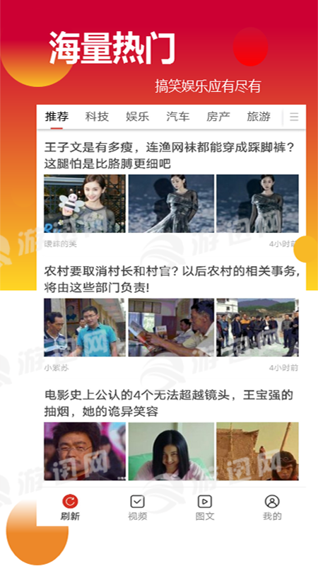 闲时看新闻、视频、搞笑、娱乐、八卦等内容,有趣、有料、有看点
