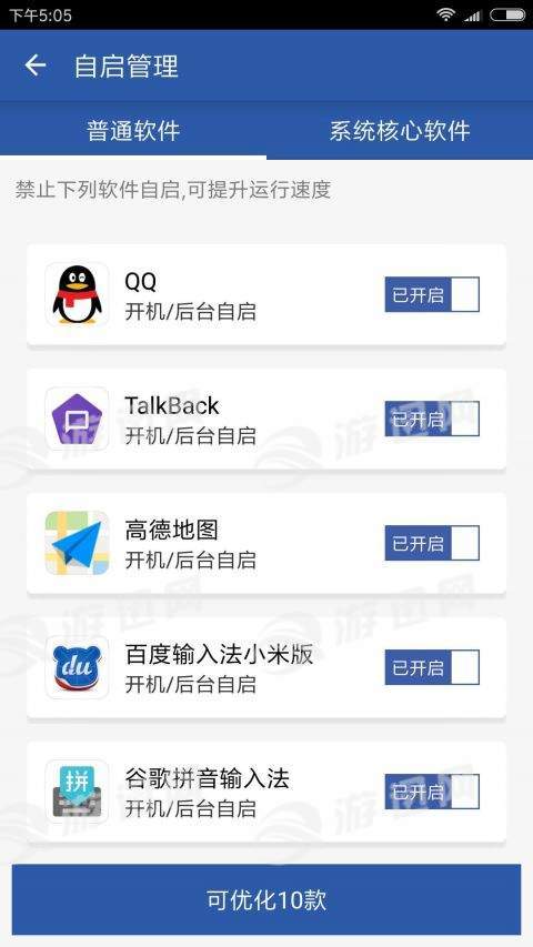 管理手机内存、软件等,可以清理手机垃圾和自启软件