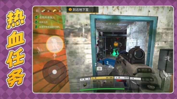 1. 核心玩法:以PVE闯关为主,包含主线剧情关卡、支线挑战关卡与日常任务模式,玩家需完成指定目标(如消灭敌人、护送物资等)推进剧情,解锁新武器与角色技能。
