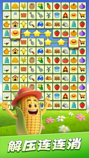 1. 核心规则:玩家需在限定步数或时间内,通过单指滑动连接相同图案的果蔬方块,连接路径不可存在阻拦,成功消除可延长剩余时间或获得金币奖励。