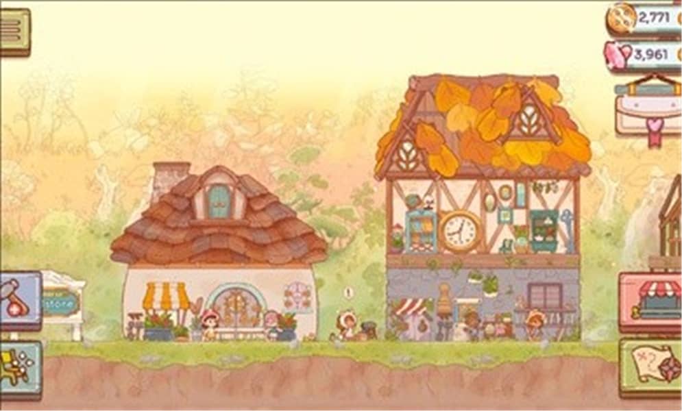 1. 村落建设阶段:初期优先建造"基础木屋"与"农田",通过种植小麦、胡萝卜等作物积累资金。解锁"工匠小屋"后,可制作"简易镐头""麻布背包"等探险装备。中期重点发展"精灵学院"与"魔法商店",提升角色培养效率与商品溢价能力。