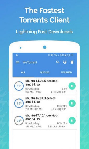 wetorrent具备智能的文件分类和管理功能,让用户能够轻松找到并管理下载的文件,提高使用效率。软件界面简洁直观,操作简单易懂,用户无需复杂的设置即可快速上手。4.