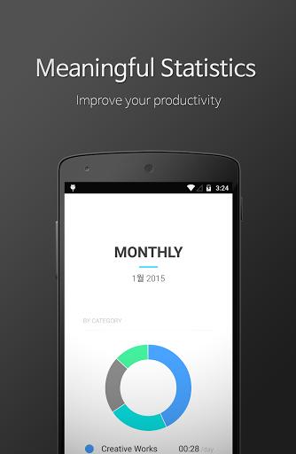 3. 强大的统计功能:支持以周或月为统计周期,通过饼状图展示不同分类的时间汇总,帮助用户分析时间使用情况。