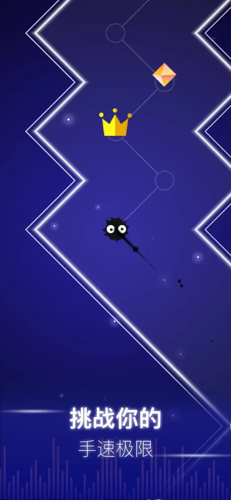 1. 节奏点击与光点控制:玩家需根据音乐节奏点击屏幕,控制光点沿轨道移动。光点需穿过轨道上的钻石以收集分数,同时避开突然出现的障碍物。若光点触碰障碍物或偏离轨道,游戏将结束。