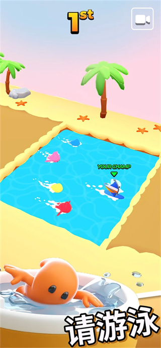 3. 高随机性赛事设计:每局比赛地图随机生成,障碍类型包括旋转刀片、移动平台、毒雾区域等,配合动态天气系统(如暴雨降低能见度、强风影响飞行轨迹),确保每场对决充满变数。