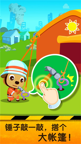 3. 灾后救援与重建:到达避难所后,儿童可扮演医生参与伤员急救(如清理伤口、消毒包扎),操作无人机探明灾区地形,使用搜救犬解救被困人员,并参与搭建帐篷、清理垃圾等重建工作,全面掌握应急技能。