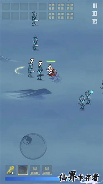 4. 特殊机制应对:遇到“前期无法升级”关卡时,优先收集高伤害法宝与保命技能,如“金钟罩”短暂无敌;面对“一击毙命领主”时,保持距离观察攻击前摇,利用走位躲避致命技能后再反击。