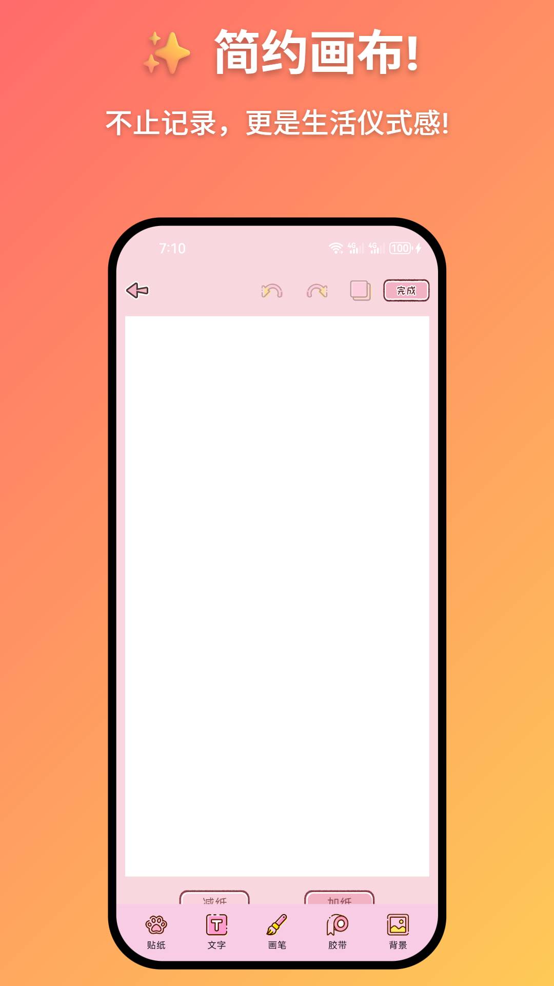 2. 背景色自由定制:支持纯色、渐变等多种背景样式调节,用户可根据心情或手帐主题自由搭配色彩,打造层次感丰富的视觉效果。