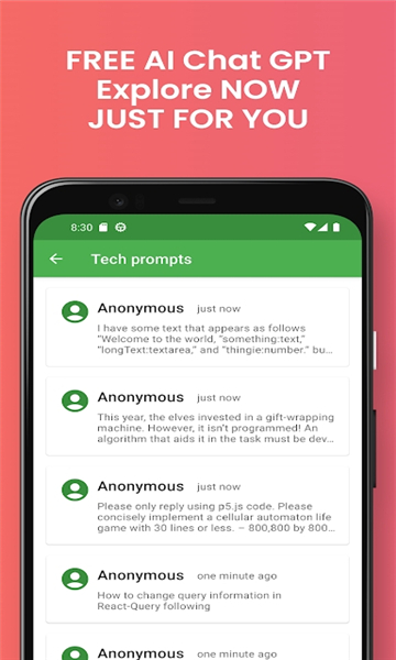 即时ai聊天是一款功能强大的ai聊天机器人软件,专为安卓用户设计,能够回答用户的各种问题,满足用户在不同场景下的聊天需求。它引入先进的ai技术,通过ai模型进行写作和聊天,为用户提供优质服务,带来全新的交互体验。