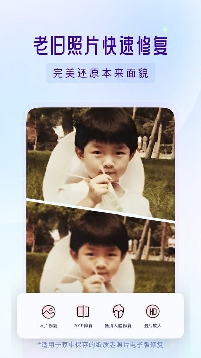 你我当年ai照片修复是一款专为安卓手机用户设计的强大照片和视频修复工具。它利用先进的ai技术,能够智能地修复老照片、模糊照片以及低分辨率图片,使它们焕然一新,恢复往日的光彩。无论是家庭珍藏的老照片,还是因设备或存储压缩导致的模糊图片,这款软件都能一键恢复清晰,让回忆更加鲜明。此外,它还支持视频修复,提升视频分辨率,消除视频噪点,让视频体验更加震撼。