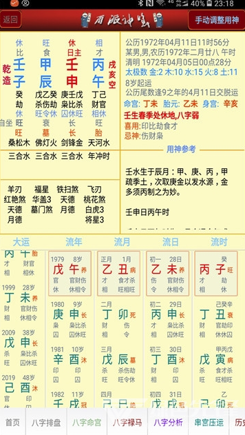 1. 实时调整分析:用户如果觉得软件的旺弱和用神分析不准确,可以手动调整旺弱及用神忌神,软件会自动重新分析,确保结果更加符合个人实际情况。