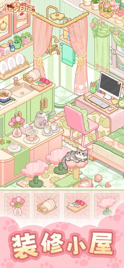 《绘梦日记测试版》是一款融合模拟经营、自由装修与少女换装元素的治愈系安卓手游,以Q萌手绘美术风格打造梦幻岛屿小镇。玩家在魔法小猫咪的引导下,从翻新破旧店铺起步,逐步解锁甜品工坊、花店、服装店、猫咖等多业态经营,通过合成订单获取金币,自由搭配数百款家具与装饰物,打造温柔奶油风、自然田园风等个性化空间,同时为角色解锁森系长裙、复古贝雷帽等精致套装。游戏以无KPI压力的舒缓节奏为核心,结合动态光影与烘焙白噪音,营造沉浸式治愈体验,满足玩家对经营策略、创意设计与个性化表达的多元需求。