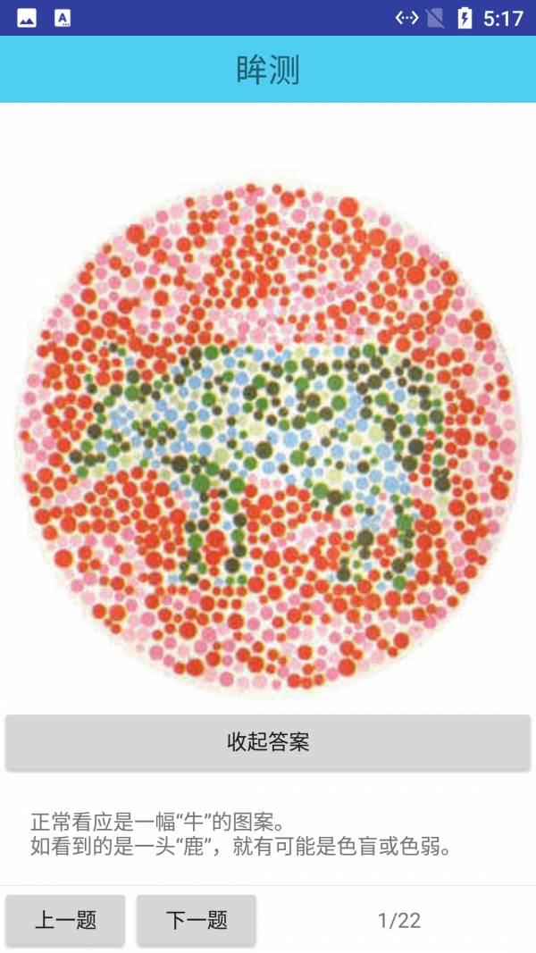 3. 视力检测功能:提供了多种视力测试功能,帮助用户了解自己的视力情况,包括色盲测试等。