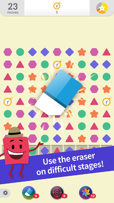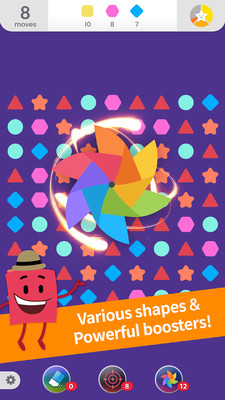 一款画风简洁的消除闯关游戏,传统三消类游戏玩法的基础上,加入了五颜六色不同形状的消除元素,还有丰富的道具可以帮助得分,每一关都三星通关是所有玩家的目标,喜欢消除游戏的赶快下载挑战吧。