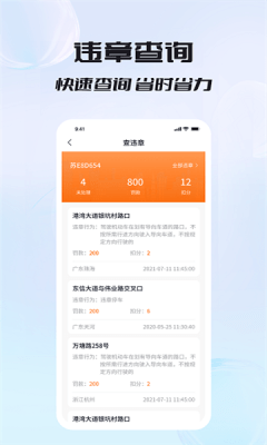 5. 违章查询与处理:用户可以在软件上查询车辆的违章记录,并进行违章缴费处理。