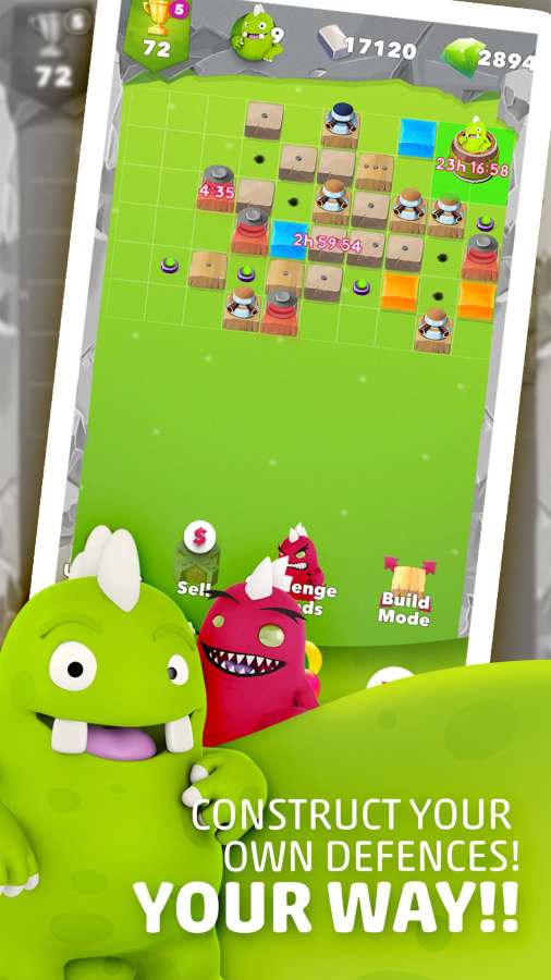 2、每个玩家建造和设计自己的“家庭基地”,旨在保护其“核心筒”,一个强大的,但重要的中心部,以每一个基地“砖的时代”;