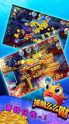 1、在这里,你可以肆意捕捞各种鱼,赢取海量金币,享受无限的海洋风光;在这里,每一发炮弹,每一张网都将织就你在这片海域的征服之路!超大炮数让玩家在捕鱼过程中有更酣畅淋漓的感觉;