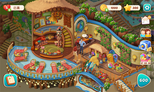 2. 庄园翻新系统:闯关获得的星星是解锁庄园区域的核心资源,玩家可自由更换家具风格,从清理旧物到布置新装,逐步还原豪宅辉煌。游戏提供无缝衔接大地图,支持自由探索庄园、小岛及游轮等场景,每个区域隐藏独特剧情线索。