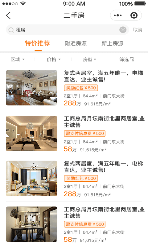 2. 智能筛选:用户可以根据区域、价格、户型等条件进行智能筛选,快速找到心仪的房源。