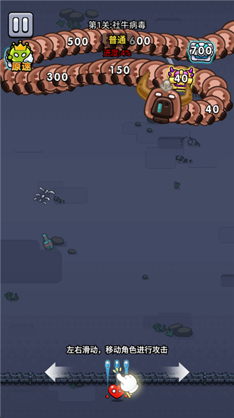 1. 操作方式:通过左右滑动屏幕控制角色移动,角色自动攻击范围内敌人。面对密集弹幕时,可点击左上角加速按钮提升战斗节奏,但需谨慎使用以避免操作失误。